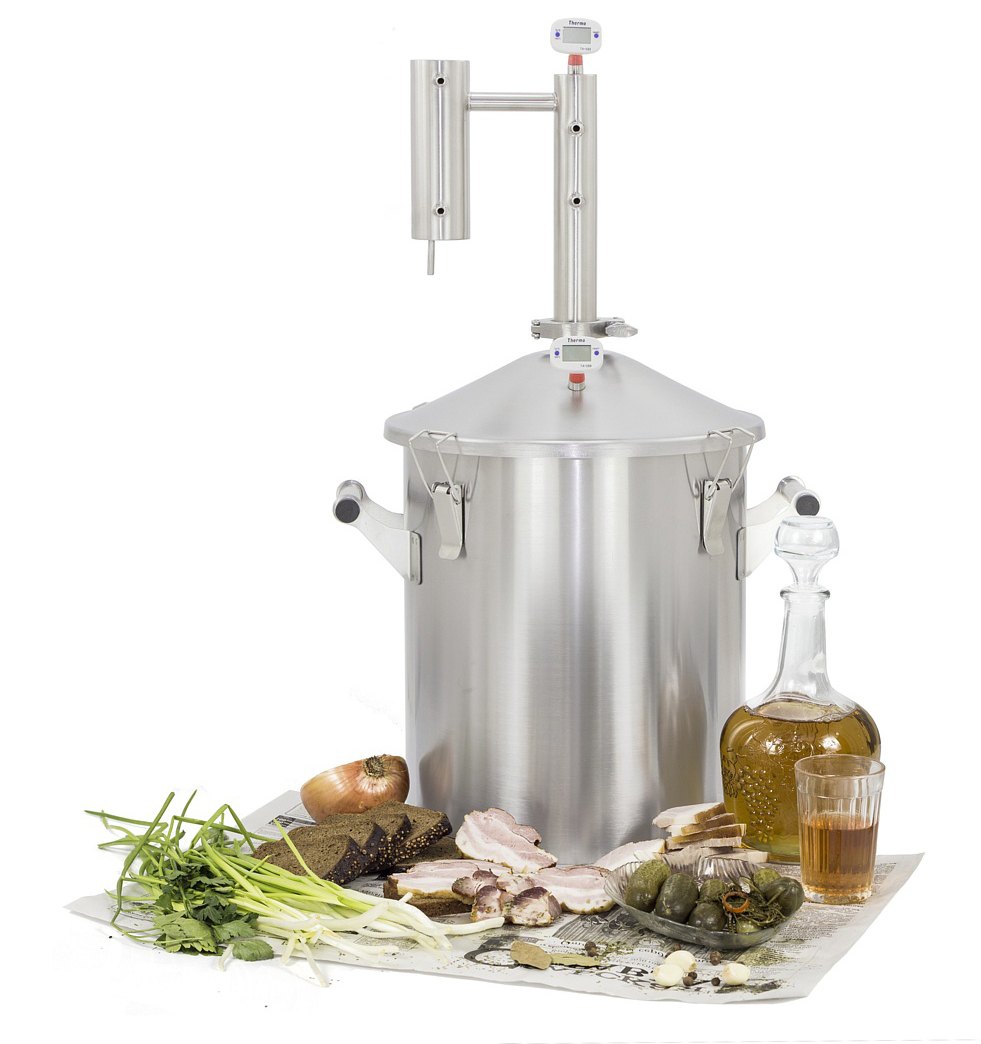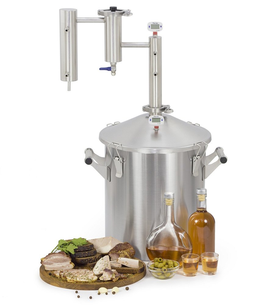 • Дистилляторы просты в использовании, имеют доступную стоимость. Они не способны полностью очистить самогон от примесей, поэтому продукт, приготовленный на таком оборудовании, после перегонки сохраняет аромат и привкус исходного сырья. При приготовлении напитков из зерновых и фруктовых браг это является преимуществом. Такие самогонные аппараты отлично подходят для изготовления чачи, рома, кальвадоса и многих других напитков. Существуют различные типы конструкций дистилляторов (например, с сухопарником, колонного типа), поэтому у новичков имеется широкий выбор.